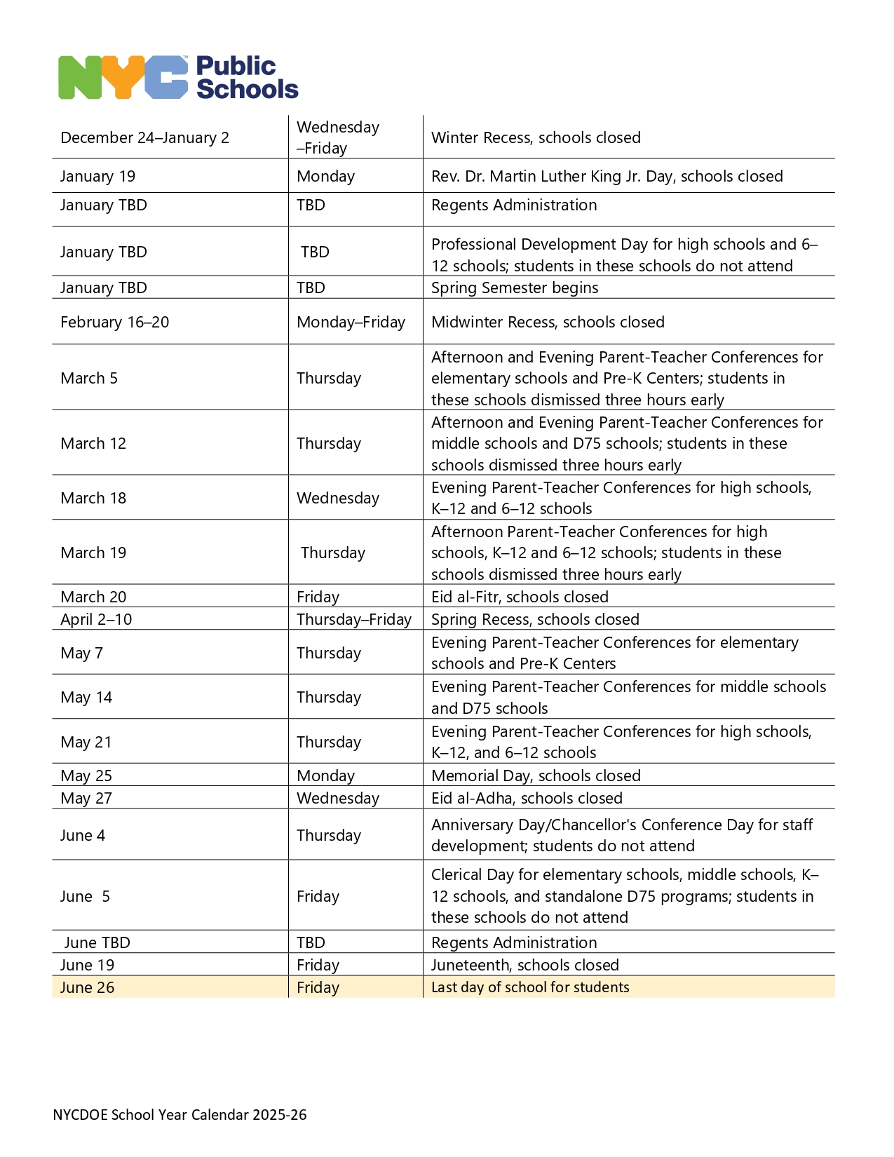 DOE Calendar