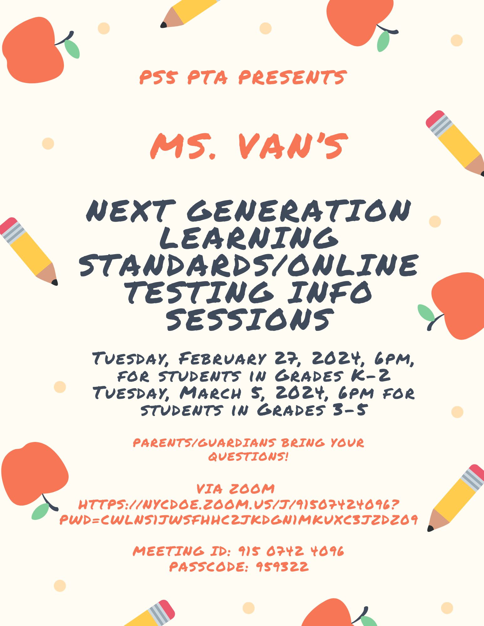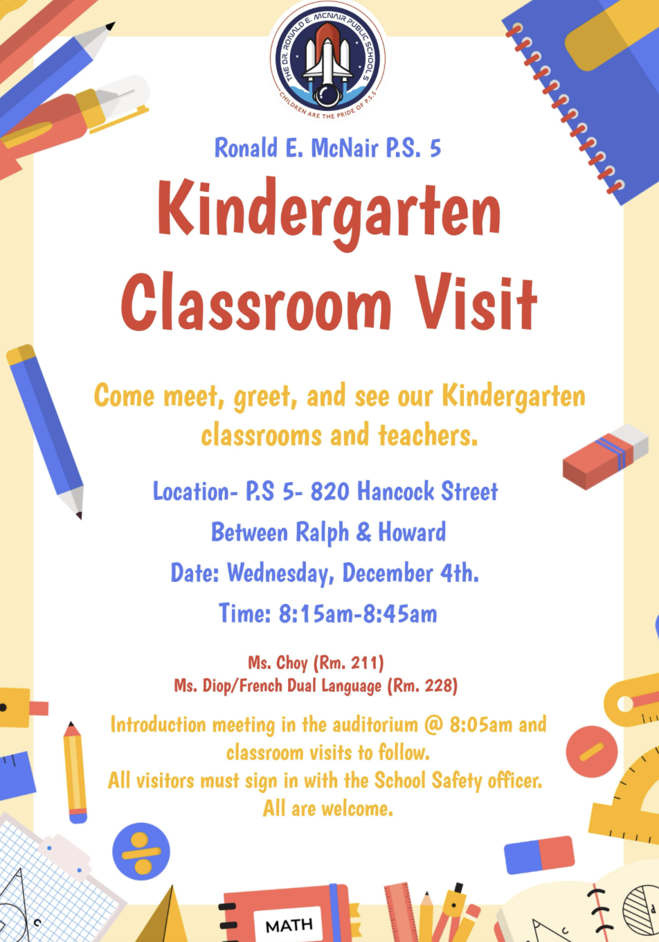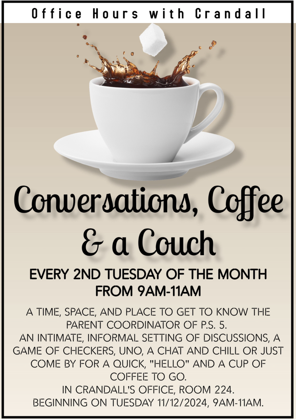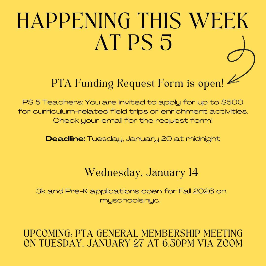 Every Tuesday, Wednesday, and Thursday at 9am, starting December 16 and when school is in session. No need to RSVP, please bring an ID and ask for our parent coordinator