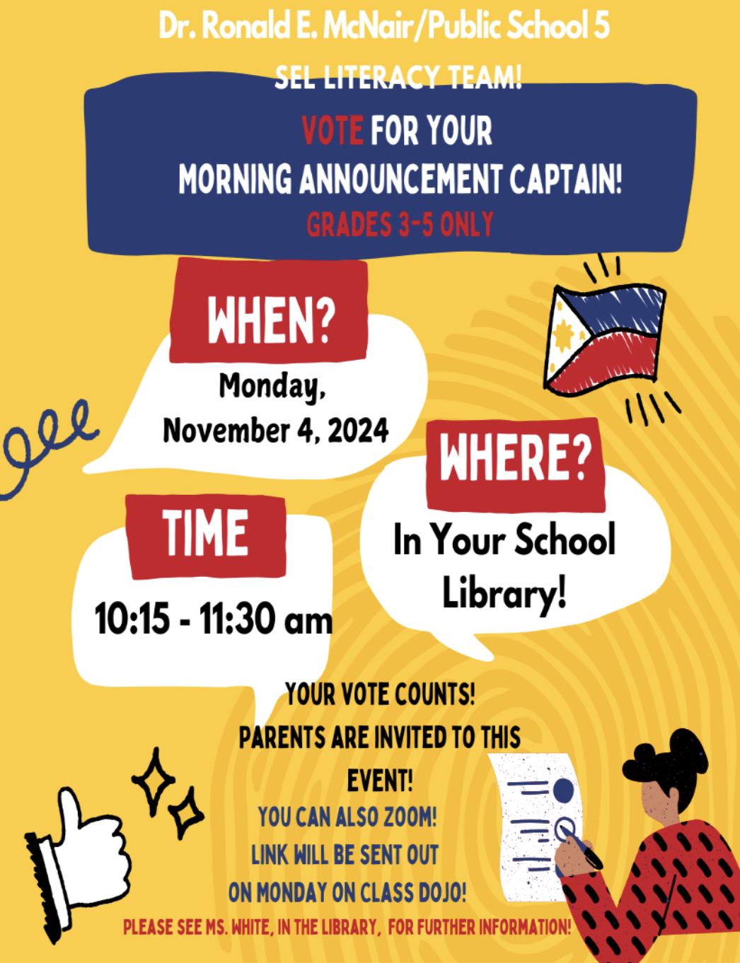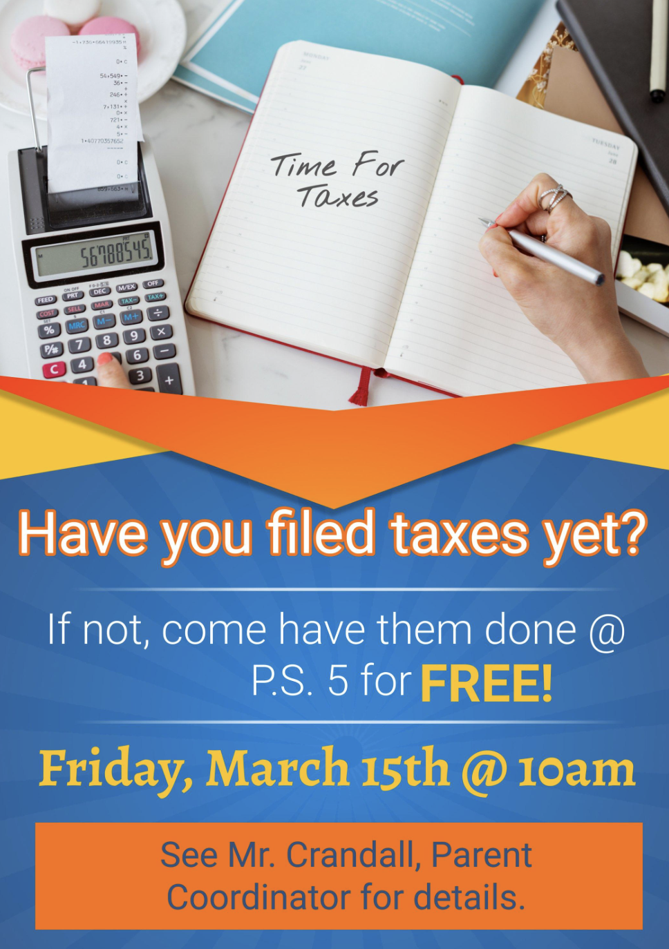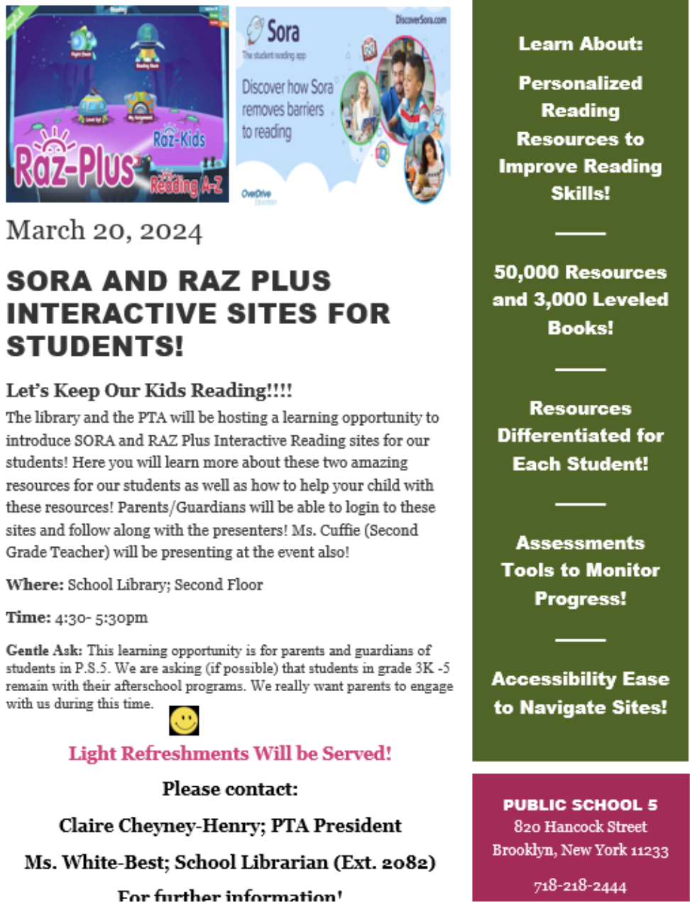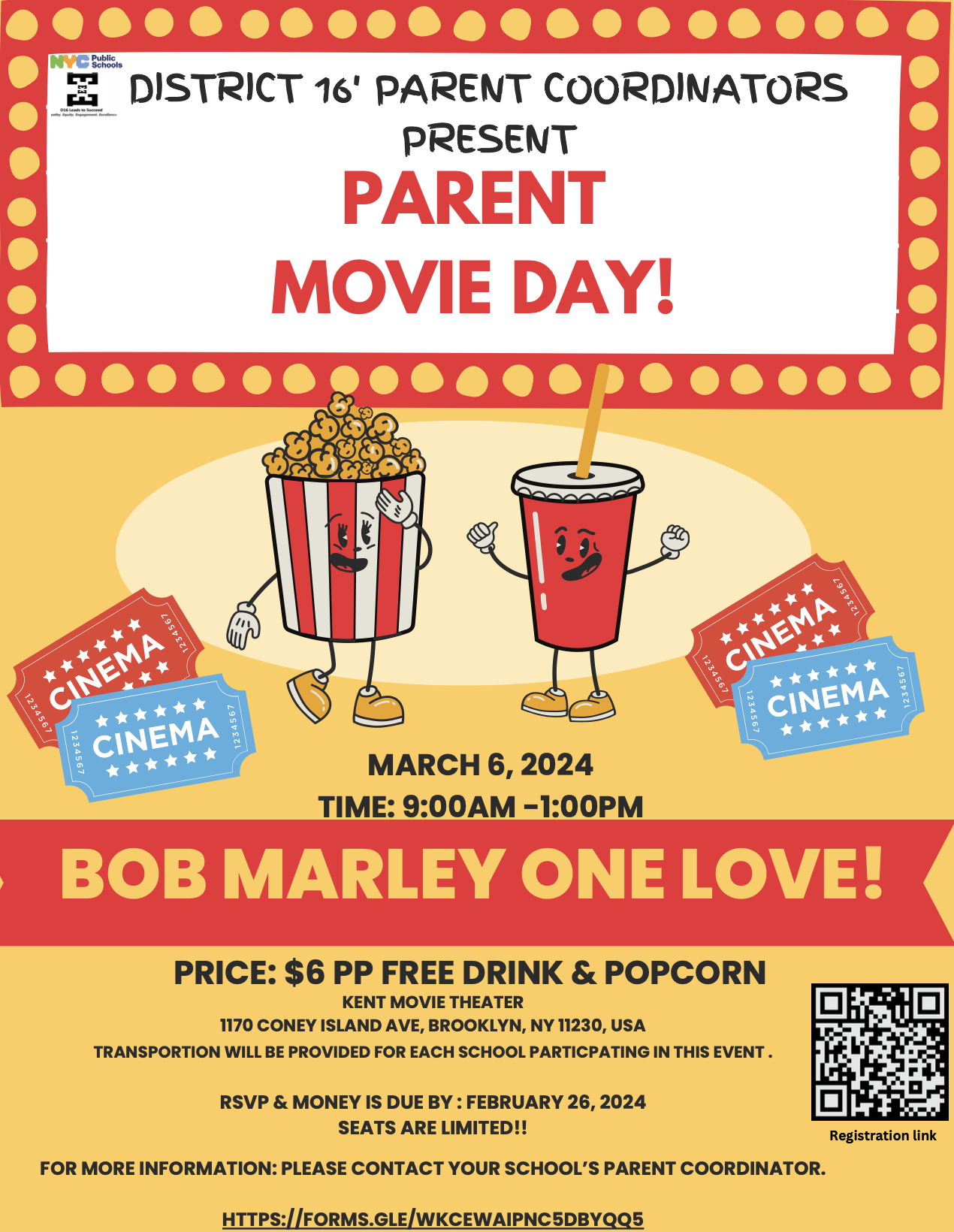 Every Tuesday, Wednesday, and Thursday at 9am, starting December 16 and when school is in session. No need to RSVP, please bring an ID and ask for our parent coordinator